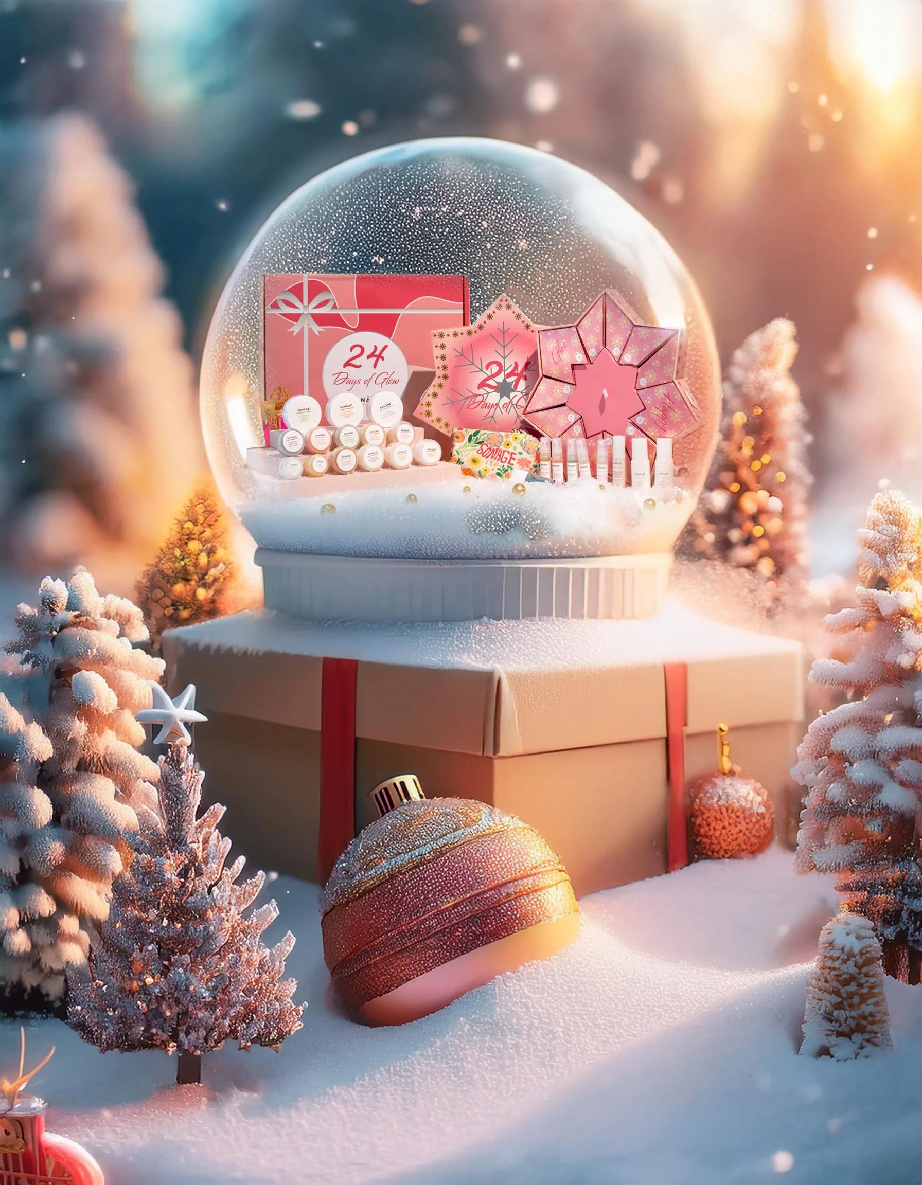 Using elements like snow, gift boxes, and other holiday ornaments, I created a set that served as a supporting backdrop to the Advent Calendar. The biggest challenge was organizing and photographing the products of various sizes and balancing them out. I used a reflective gold mesh with backlighting to illuminate the image